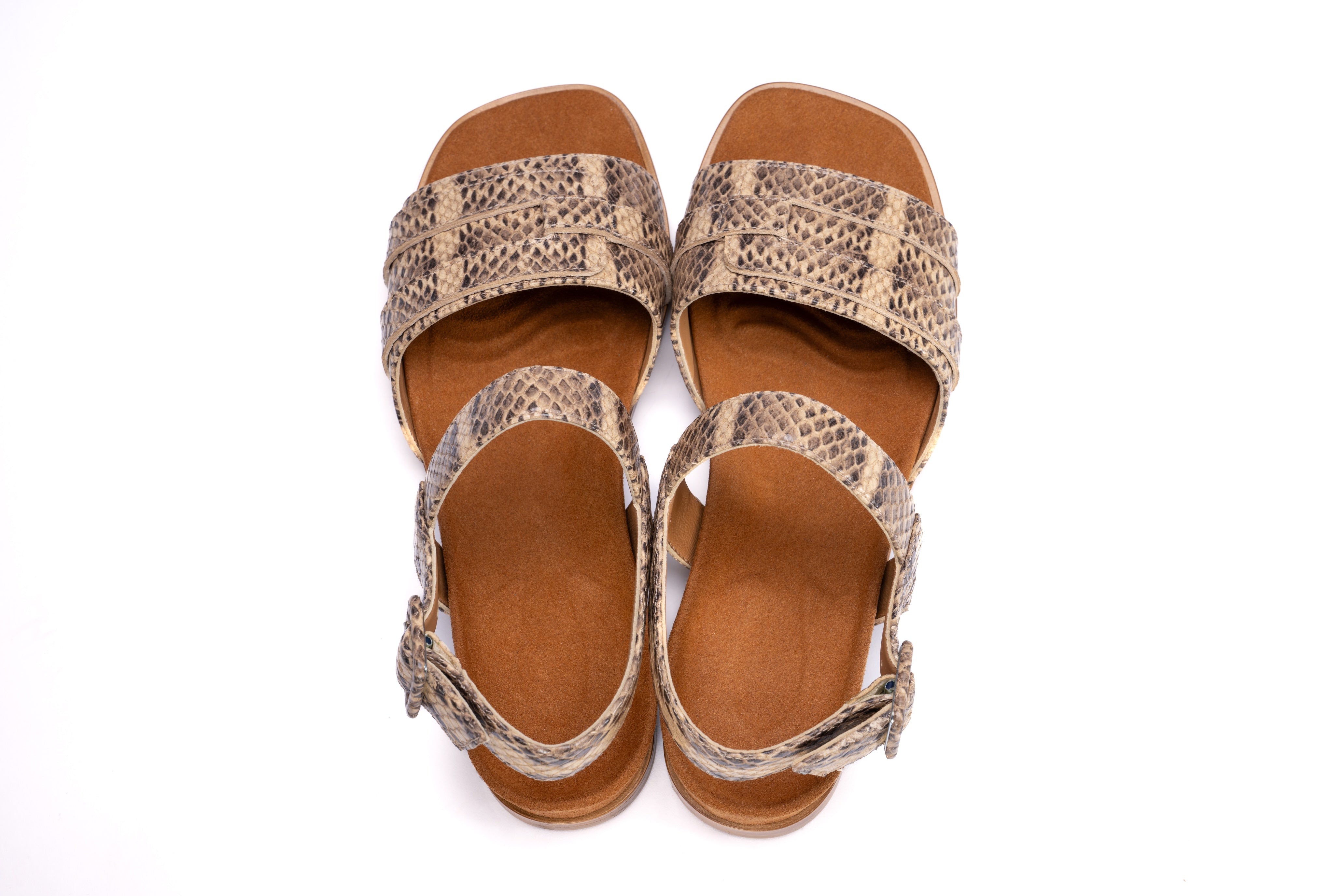 - Adjustable rear strap with leather-covered buckle