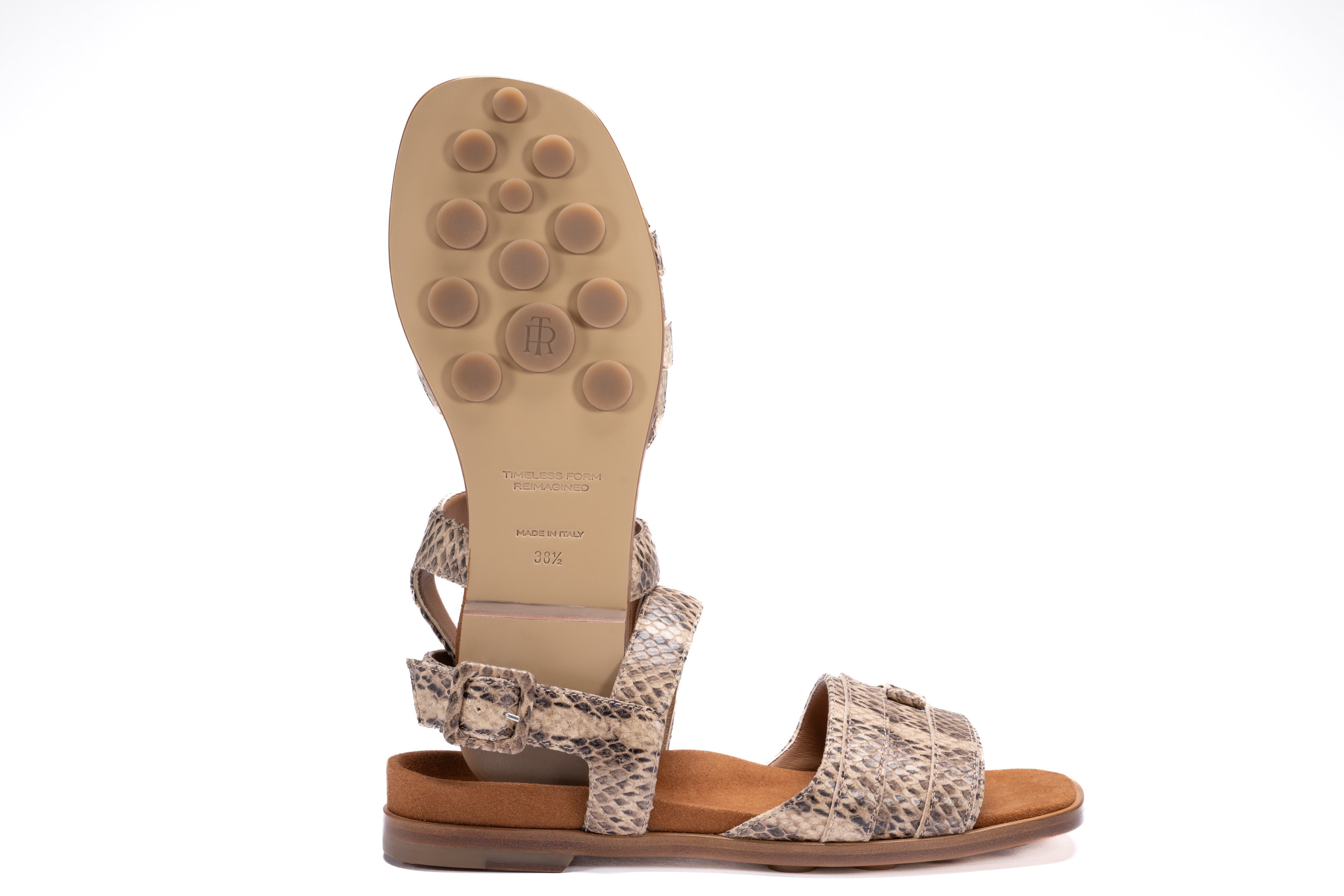 The TERESA sandal is your go-to for effortless warm-weather style, anywhere your days (and nights) take you. Crafted in sumptuous Italian nappa, TFR's signature offset buckle detail elevates the classic silhouette, while an adjustable heel strap ensures a flawless, all-day fit. The offset square toe adds a modern, flattering edge -- perfect for stepping out with confidence and ease.